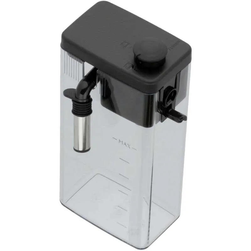 Die Milchkaraffe besteht aus einem transparenten Milchbehälter, einem Deckel mit Aufschäumdüse und einem Milchansaugrohr. Der Aufschäumdeckel und das Milchreservoir sind leider nicht mehr separat erhältlich.