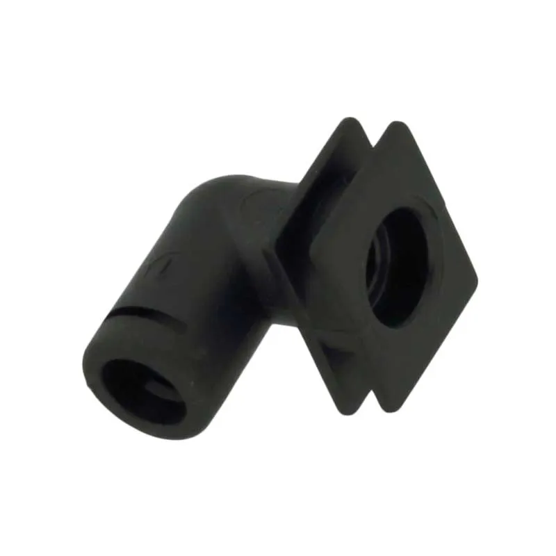 Dieser Anschlusswinkel verbindet den Dampfgarer mit dem Teflonschlauch und wird von innen mit einer Klemme an der Vorderseite der Jura E-Serie Kaffeemaschine befestigt.