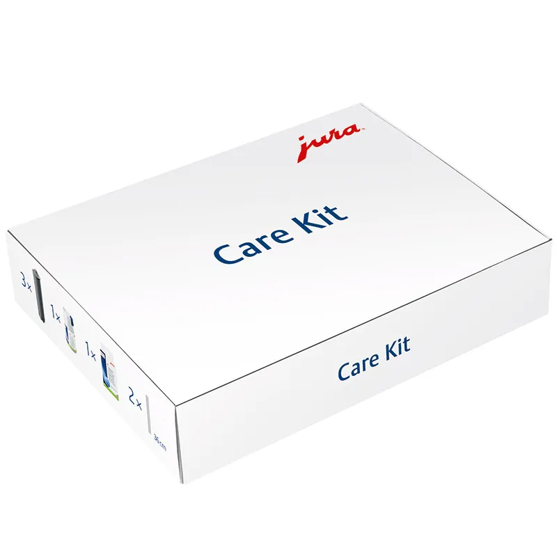 Das Pflegeset enthält drei CLARIS Smart+ Filterpatronen, 90 g Mini-Tabletten, 3-Phasen-Reinigungstabletten und zwei Milchschläuche aus lebensmittelechtem Silikon mit einer Länge von 360 mm für den Aufschäumer. Mit den JURA-Pflegeprodukten wird der Kaffeevollautomat über Monate hinweg gepflegt und gereinigt. So wird sichergestellt, dass weiterhin bester Kaffee, Espresso, Cappuccino, Latte Macchiato oder andere Kaffeespezialitäten zubereitet werden. Das Set ist für alle Jura Kaffeevollautomaten mit Intelligentem Wassersystem (I.W.S) geeignet.
